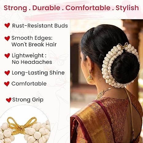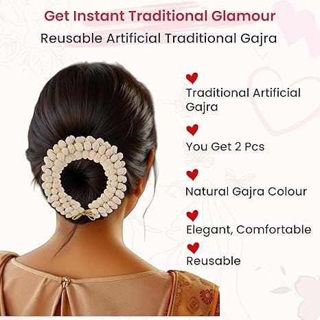 - Easy Maintenance: The Artificial Gajra requires minimal maintenance compared to fresh flowers. It does not require watering, and there is no need to worry about wilting or petals falling off. Simply store it properly when not in use, and it will retain its beauty and charm.