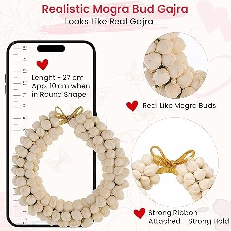 - The Artificial Gajra is crafted with meticulous attention to detail, resulting in a lifelike and realistic appearance that replicates the delicate beauty of fresh flowers. Each individual flower is intricately designed to capture the essence of nature, ensuring a visually stunning and enchanting accessory.